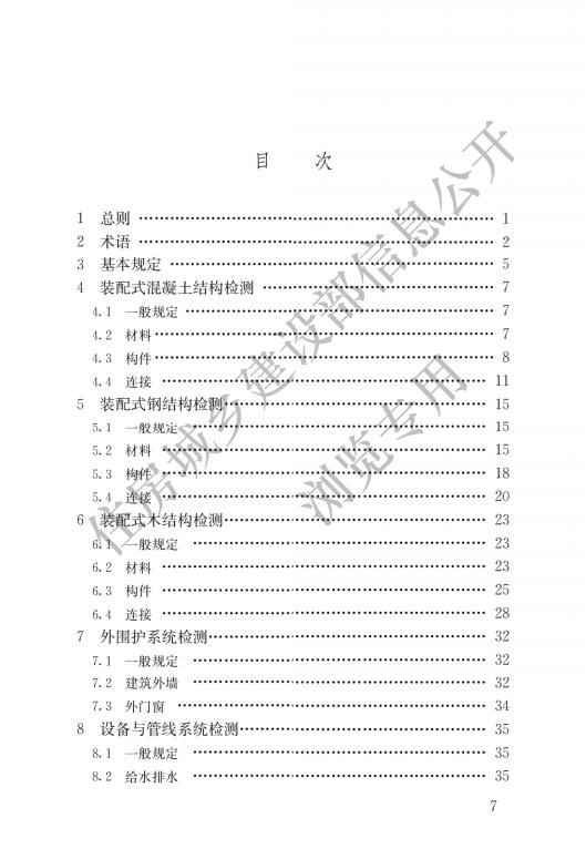 除總則、術(shù)語、基本規(guī)定外,標(biāo)準(zhǔn)還對(duì)裝配式混凝土結(jié)構(gòu)檢測(cè)、裝配式鋼結(jié)構(gòu)檢、裝配式木結(jié)構(gòu)檢測(cè)、外圍護(hù)系統(tǒng)檢測(cè)、設(shè)備與管線系統(tǒng)檢等作出了明確的規(guī)定。