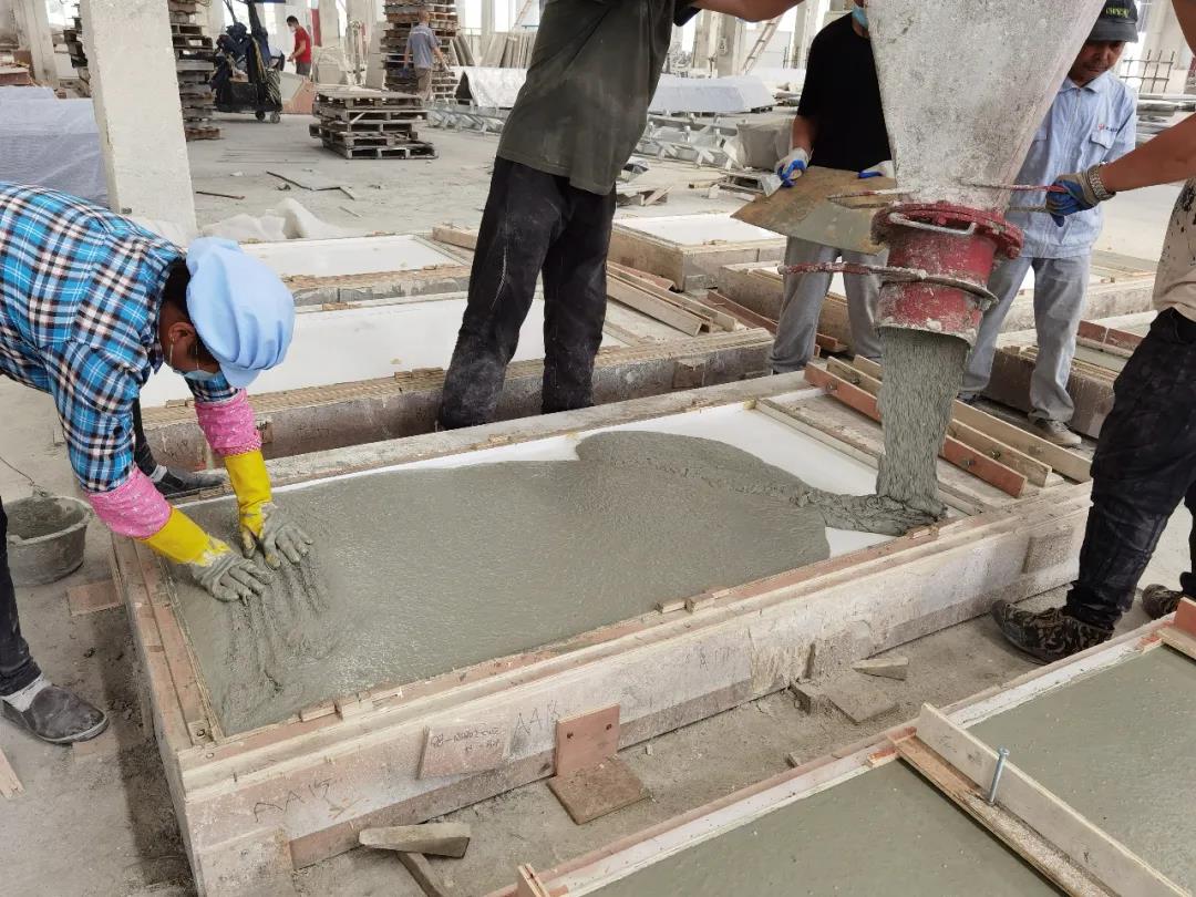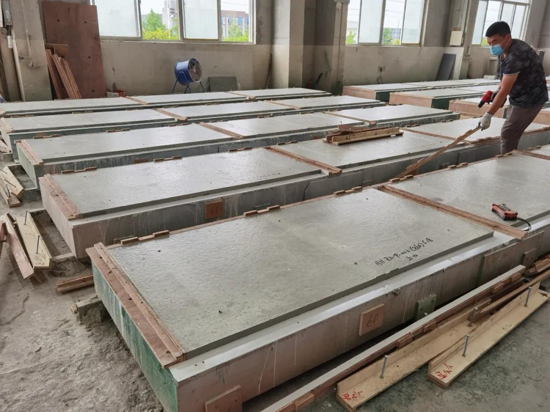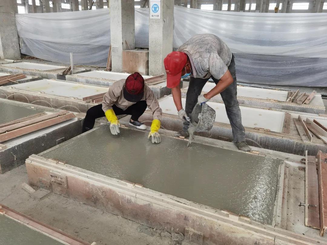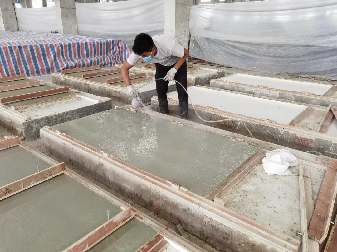 本篇選擇了一款最簡單的平面構(gòu)件——仿清水混凝土墻構(gòu)件,來展示生產(chǎn)過程。相片拍攝于2020年6月,倍立達滁州工廠,感謝倍立達新材料系統(tǒng)工程公司的參觀接待和講解。