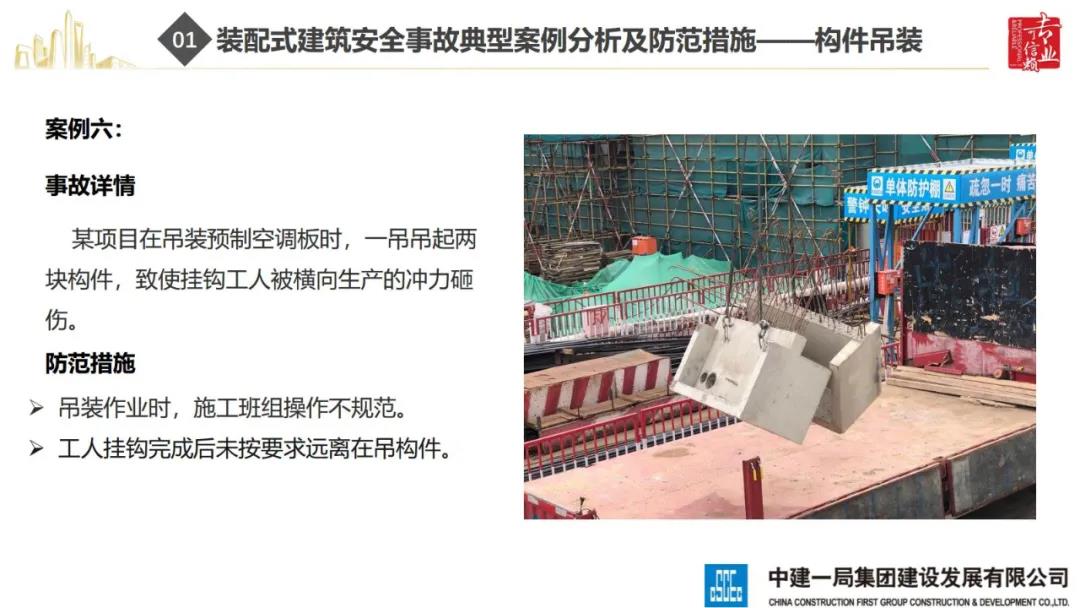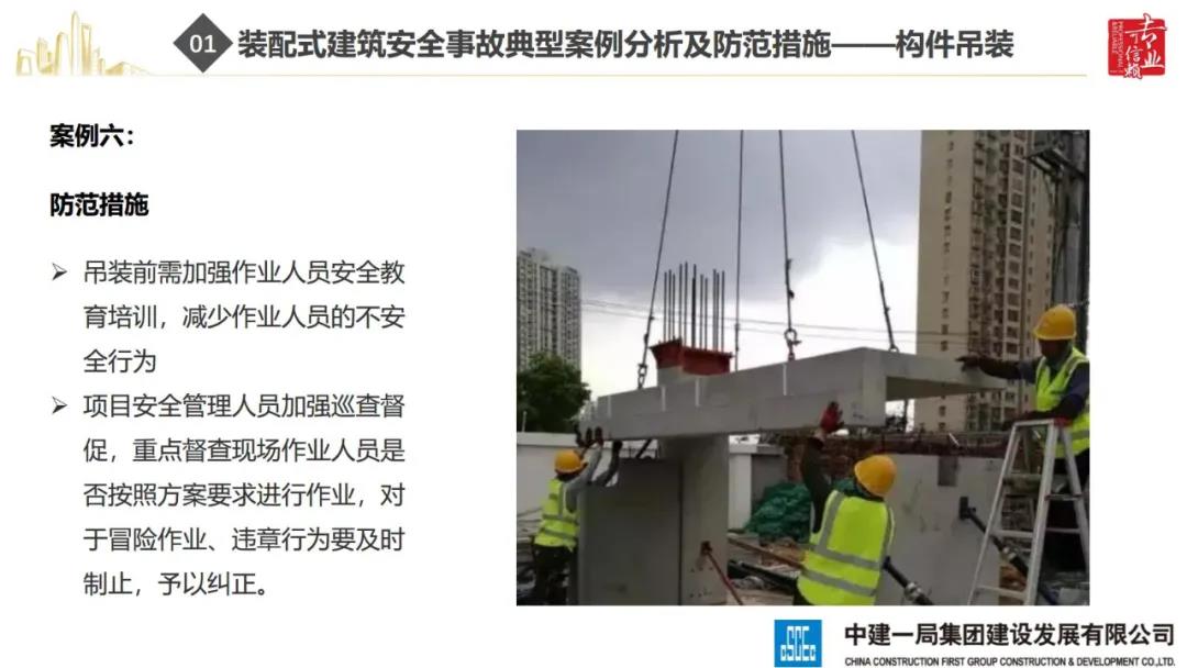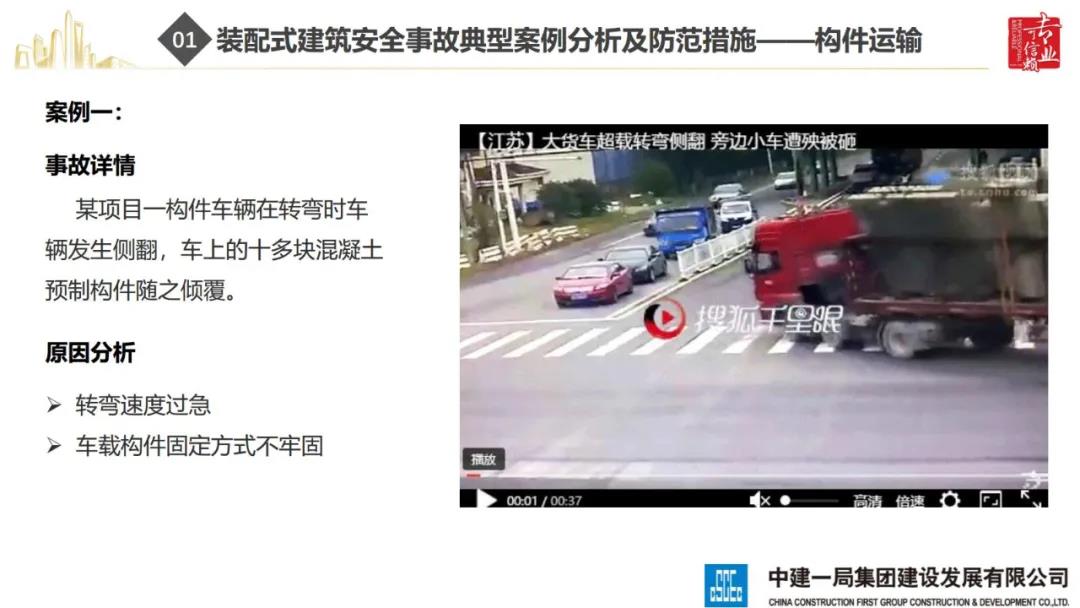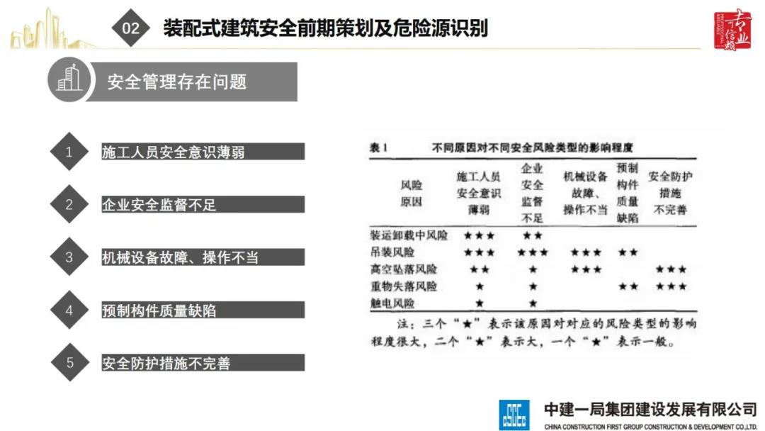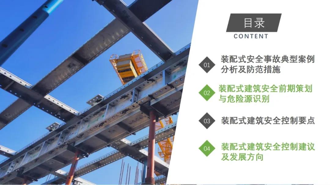 來源:裝配式建筑2020年8月28日,“2020全國重大工程安全管理創(chuàng)新與事故防范經(jīng)驗交流會”在北京召開。中建一局集團建設發(fā)展有限公司副總經(jīng)理李浩做“裝配式建筑施工安全風險控制及事故防范措施”的報告。通過分析裝配式建筑安全事故典型案例,從深化設計、生產(chǎn)運輸、施工前準備、現(xiàn)場施工4個階段提出安全控制要點;指出安全前期策劃和危險源識別的重要性;最后,提出裝配式建筑安全控制建議及發(fā)展方向。