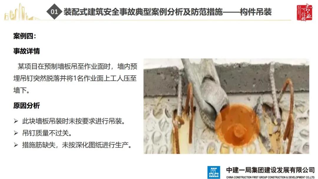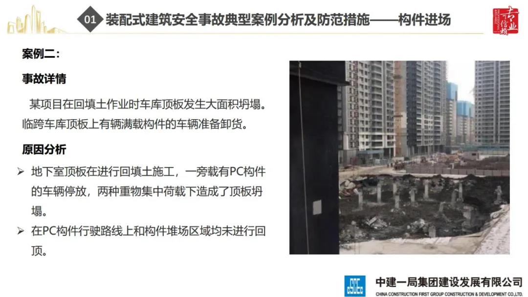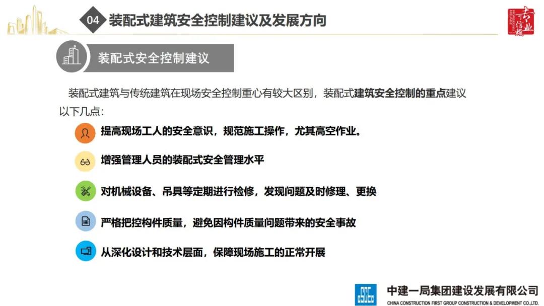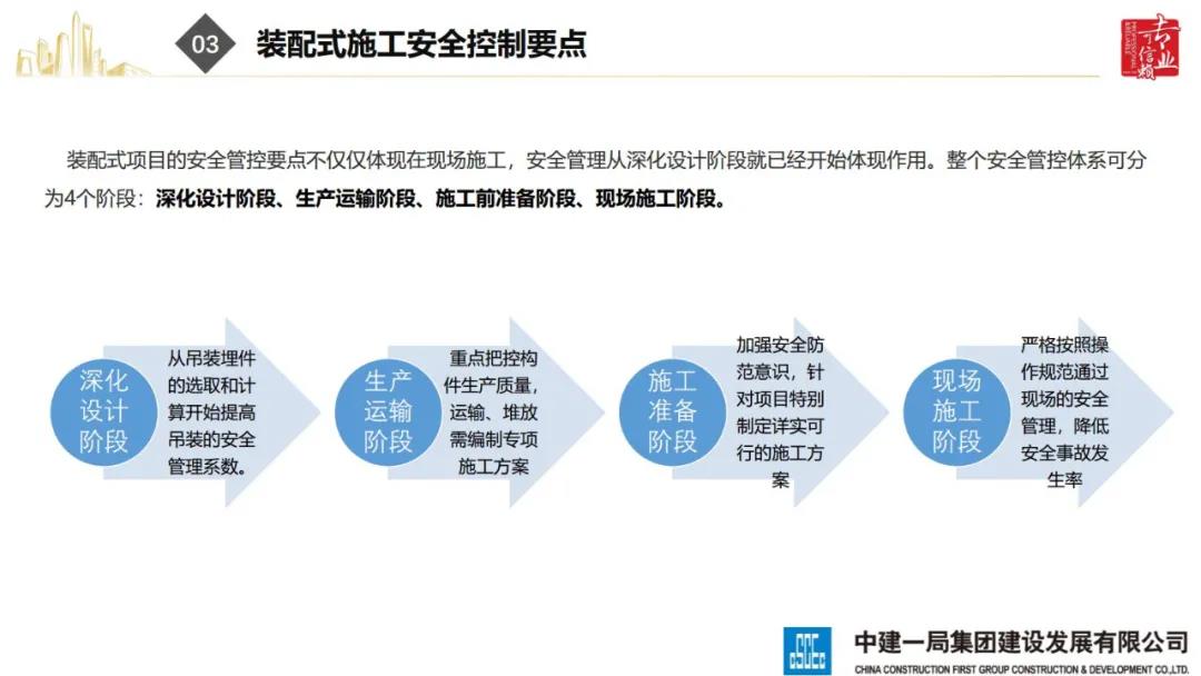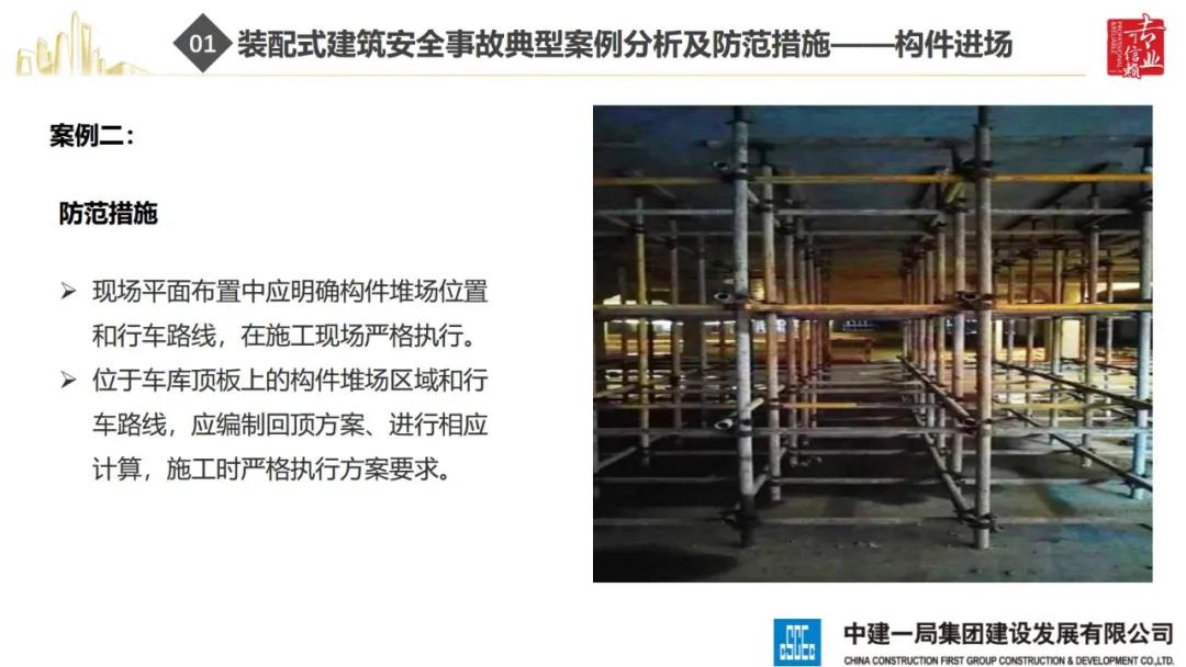 來源:裝配式建筑2020年8月28日,“2020全國重大工程安全管理創(chuàng)新與事故防范經(jīng)驗交流會”在北京召開。中建一局集團建設發(fā)展有限公司副總經(jīng)理李浩做“裝配式建筑施工安全風險控制及事故防范措施”的報告。通過分析裝配式建筑安全事故典型案例,從深化設計、生產(chǎn)運輸、施工前準備、現(xiàn)場施工4個階段提出安全控制要點;指出安全前期策劃和危險源識別的重要性;最后,提出裝配式建筑安全控制建議及發(fā)展方向。